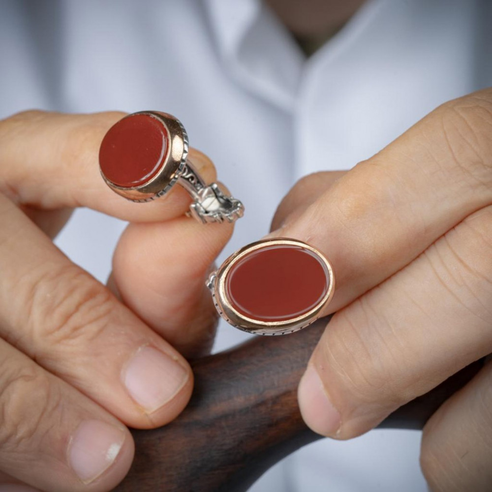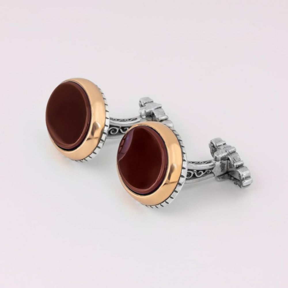 خاتم وكبك حجر عقيق دائري لون احمر مصنوع بأيدي أمهر الحرفيين مما يجعلها محتفظة برونقها الرجالية التي تم تصنيعها من اجود الخامات على ارقى المستويات حيث تمنحك اطلالة رائعة وقوية تجذب الإنتباه إليك وتتسم بأنها ذات جودة عالية ، سارع الآن فى طلبها.