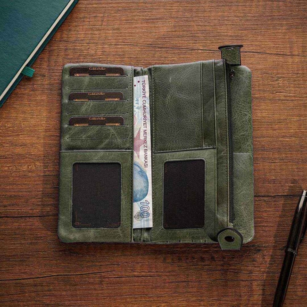 - توفر اللون الأخضر الفريد لهذه المحفظة لمسة من الأناقة والأصالة.