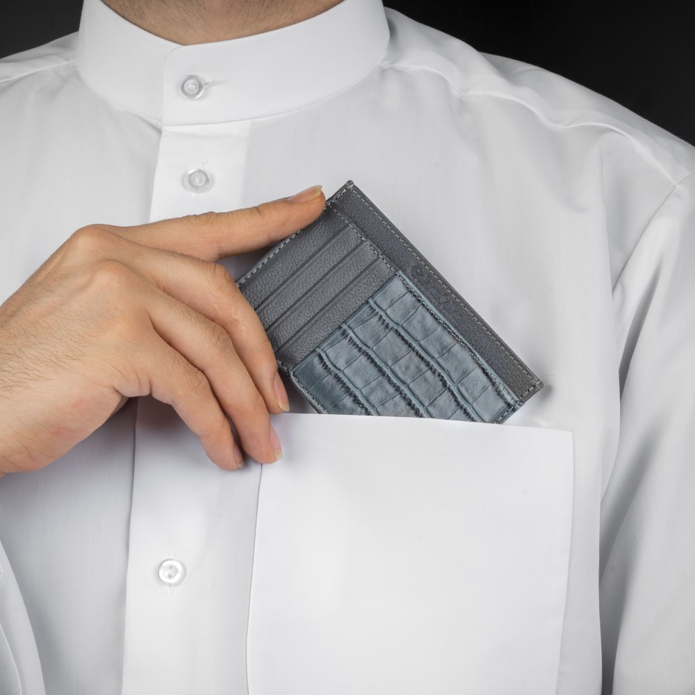 محفظة جلد صغيرة رمادي من البائع الذهبي , صنعت هذه المحفظة بعناية فائقة من جلد طبيعي 100%، حيث تتميز بلمعة فريدة وملمس ناعم. إنها تجسد فخامة الجلد الطبيعي، مما يمنحك لمسة من الرفاهية في استخدامها , يعتبر تصميم هذه المحفظة مناسب جداً مما يجعلها مثالية للرجال الذين يقدرون التفاصيل الدقيقة. بفضل حجمها المناسب، يمكنك حملها بسهولة في جيبك.